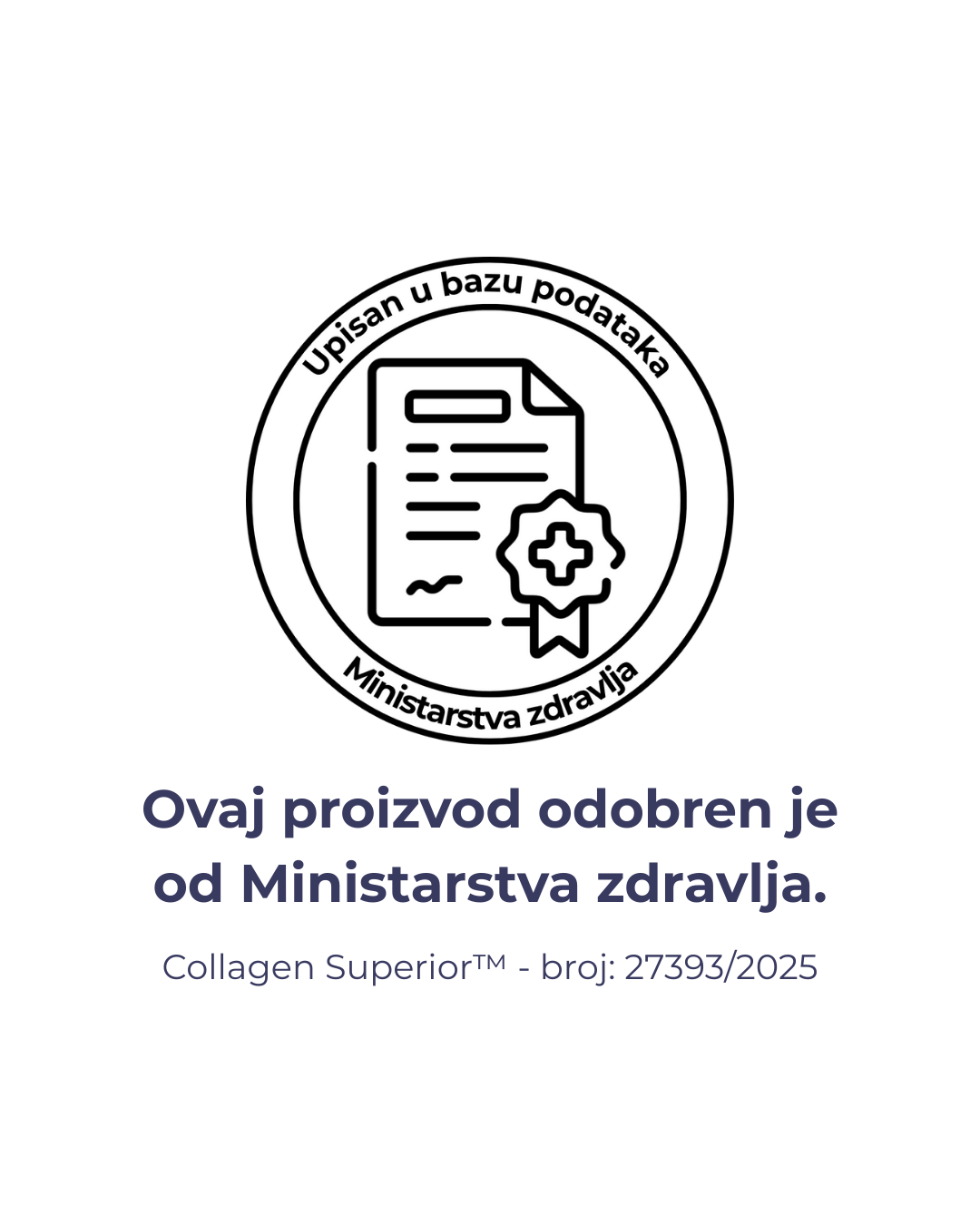 Collagen Superior je prošao sve laboratorijske analize na Institutu za javno zdravlje, dobio je mišljenje od Farmaceutskog fakulteta i odobrenje od Ministarstva Zdravlja da je bezbedan i siguran za konzumaciju.
