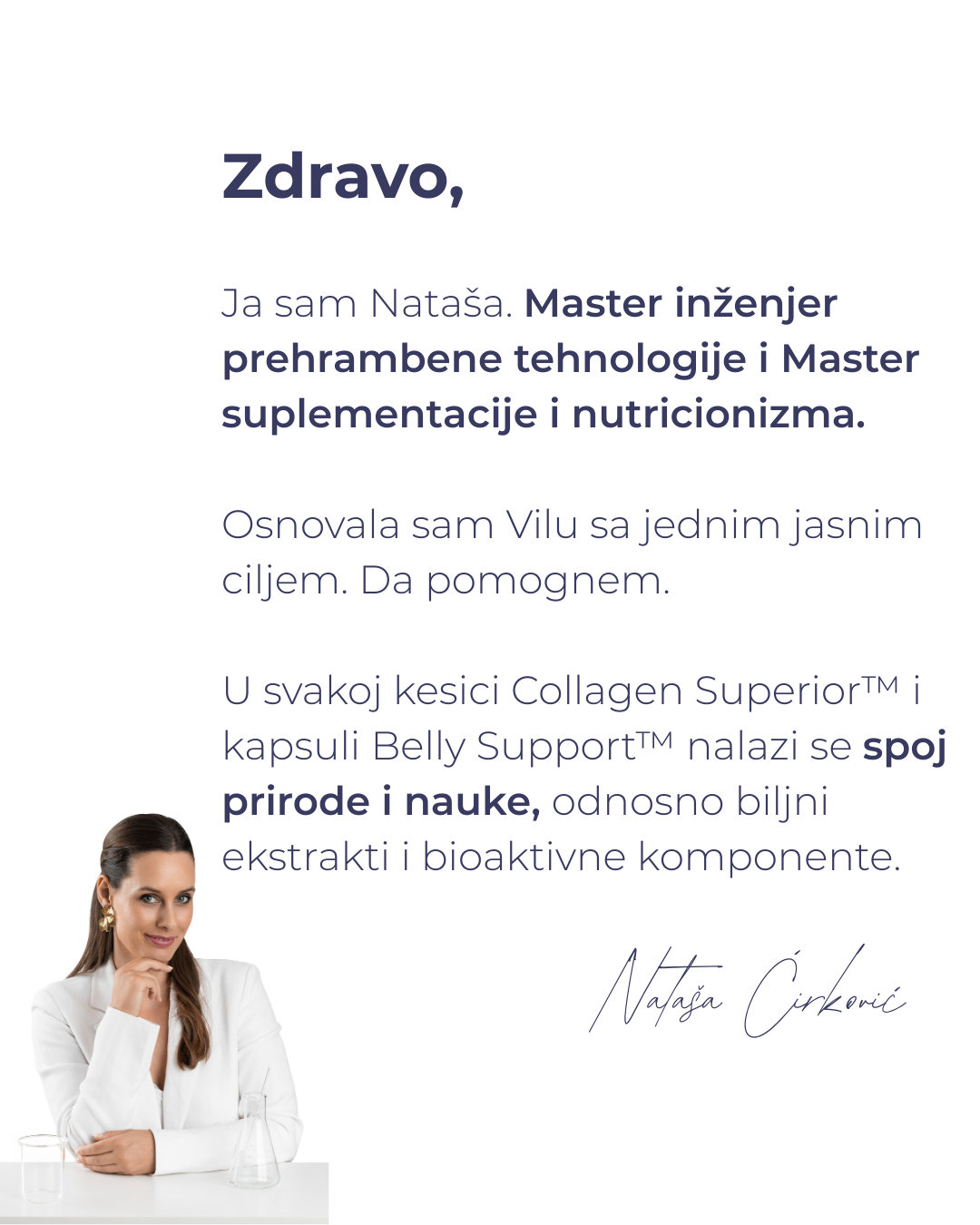 - Kao Master suplementacije i ishrane i Master inženjer prehrambene tehnologije birala sam da svaki sastojak u Collagen Superior™ proizvodu bude najvišeg kvaliteta. Vodila sam se rečenicom, samo od kvalitetnih sastojaka možeš napraviti kvalitetan proizvod.