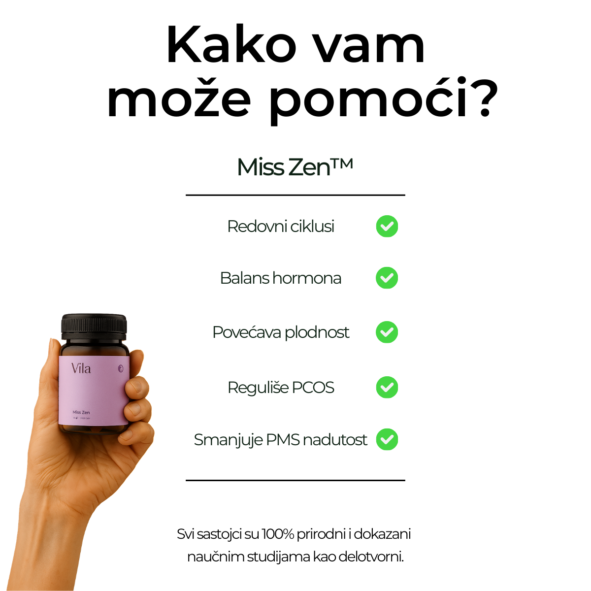 - Zajedno sa doktorima, napravila sam formulaciju koja sadrži biljne ekstrakte i bioaktivne komponente. Ovako snažna formulacija dovodi ženske hormone u balans. Kada su hormoni u balansu onda je i menstrualni ciklus redovan i regularan.